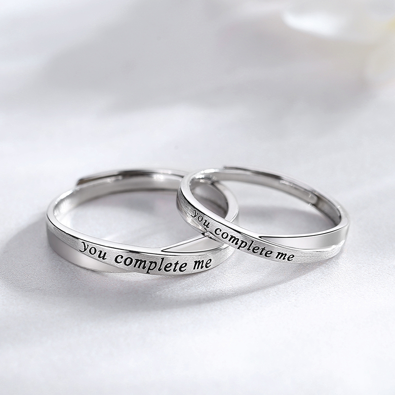 In imagine set inele cuplu reglabile din argint rodiat disponibile aici - https://modart.ro/bijuterii-argint/inele-argint/set-inele-cuplu-argint-set-inele-personalizate-argint-inele-argint-reglabile-inele-barbati-argint-inele-din-argint-cu-mesaj-you-complete-me-pentru-cupluri-set-familie-4-03-gr
