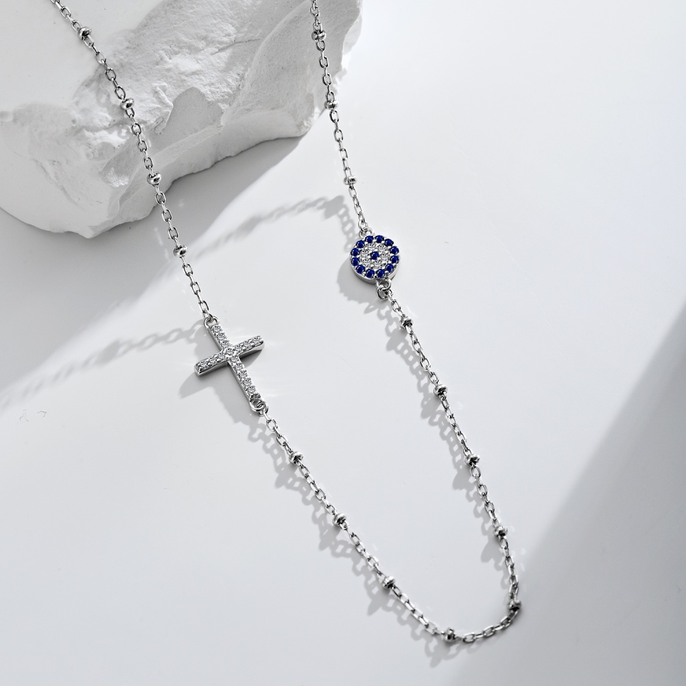 In foto - https://modart.ro/bijuterii-argint/lantisoare-argint/lantisor-talisman-argint-cu-simbol-deochi-si-cruciulita-cu-cristale-si-bile-lantisoare-argint-cruce-dama-argint-925-cross-evil-eye-40-5-cm-argintiu-3-32-gr
