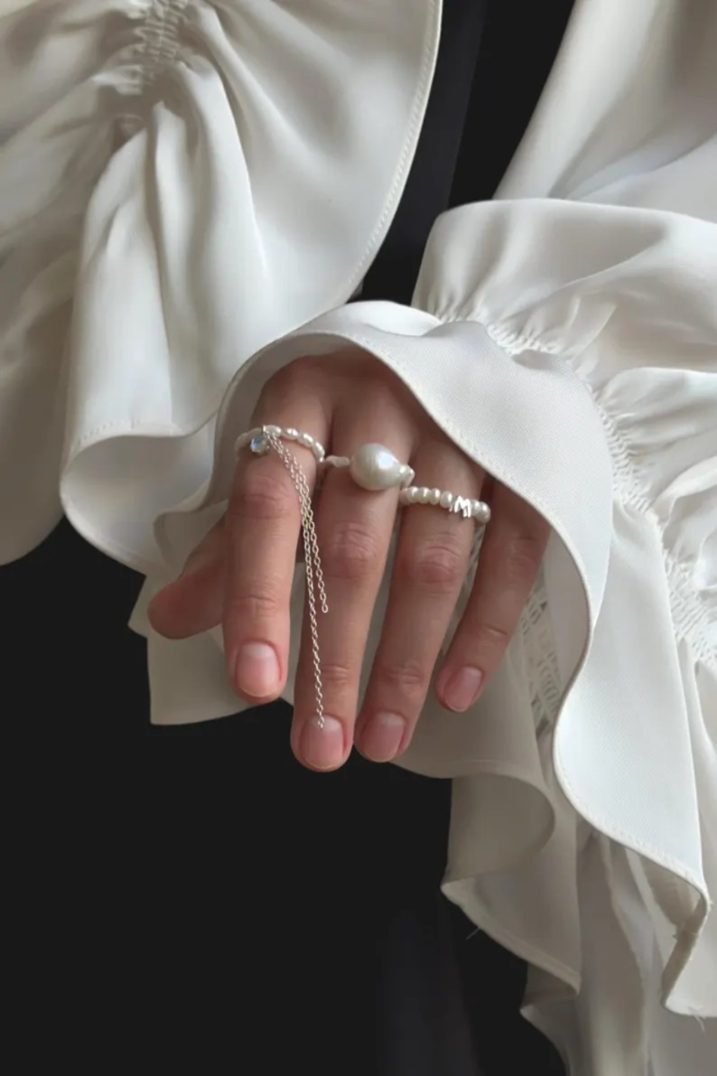 - Minimalist Modern: Poartă inelul ca singurul accesoriu la o ținută simplă, monocromă, pentru a lăsa frumusețea perlelor să vorbească de la sine.